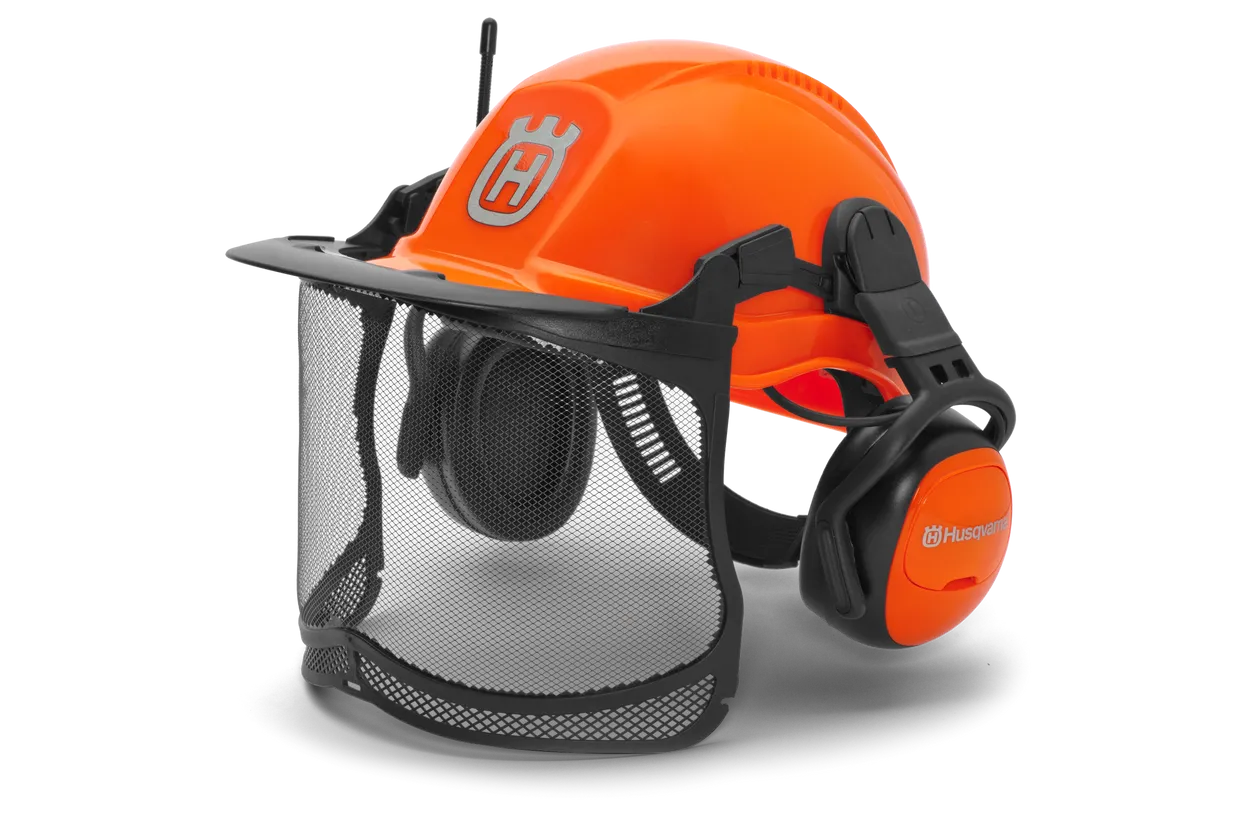 En hjelm lavet til skovarbejdere, der søger den bedste kombination af sikkerhed og optimal ergonomi i det daglige arbejde.