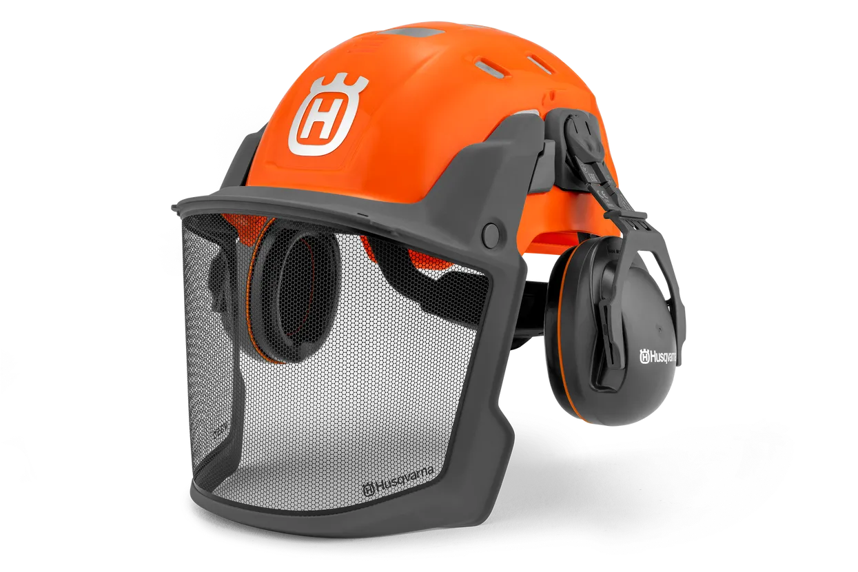 Beskyttende skovhjelm med høreværn, visir og en halsbeskyttelse. Husqvarnas Technical-hjelm, der er robust og let, er designet til at være modulopbygget, så du kan skifte visir og høreværn, så de passer til alle forhold. Visiret omslutter dit ansigt og giver et fremragende synsfelt, uanset om det er nede eller i standby-position, hvilket sikrer uhindret udsyn til trætoppene. Alt i alt er hjelmen fremstillet til at være komfortabel, så du kan koncentrere dig om den foreliggende opgave. Fås i to farver, der passer til din stil og dit miljø.
